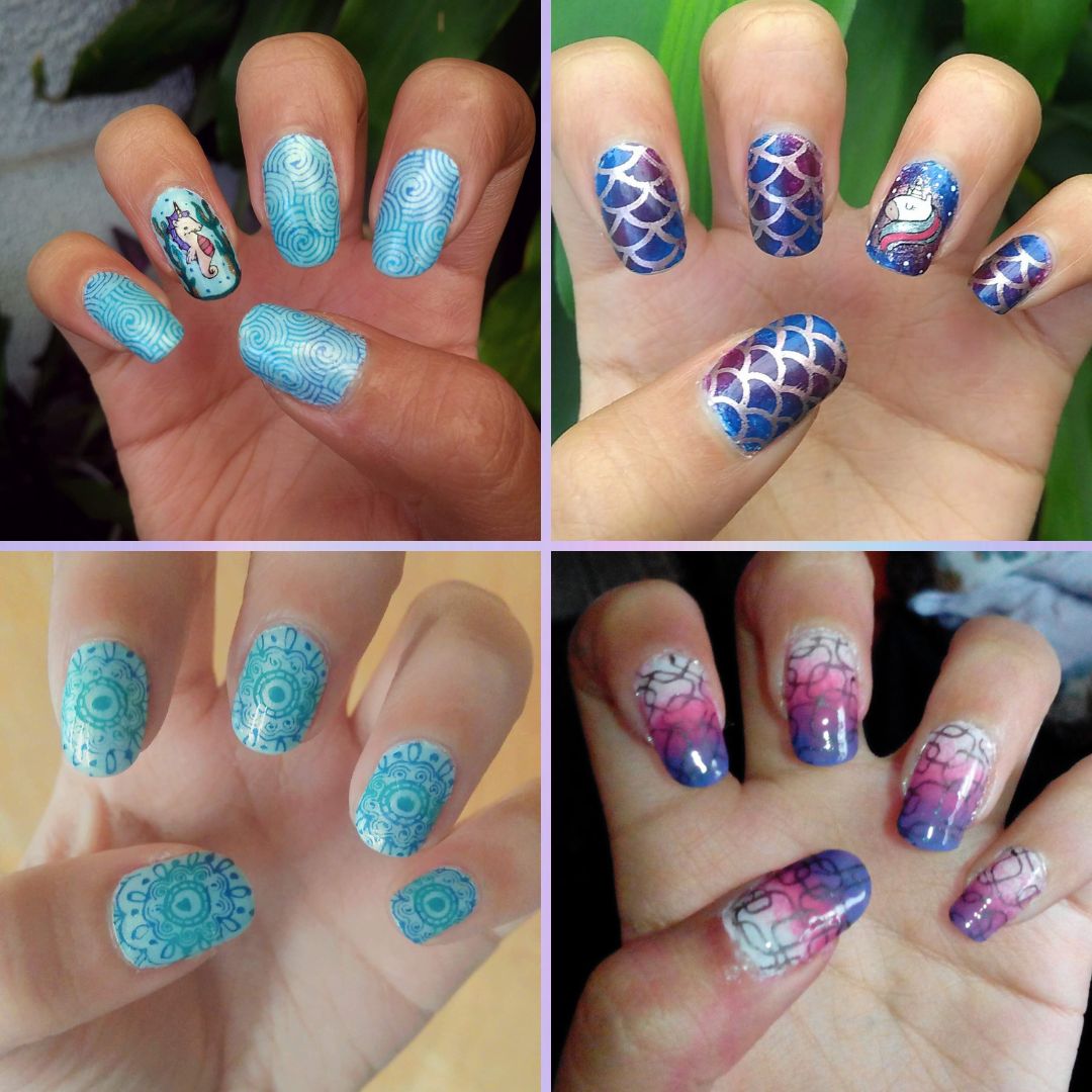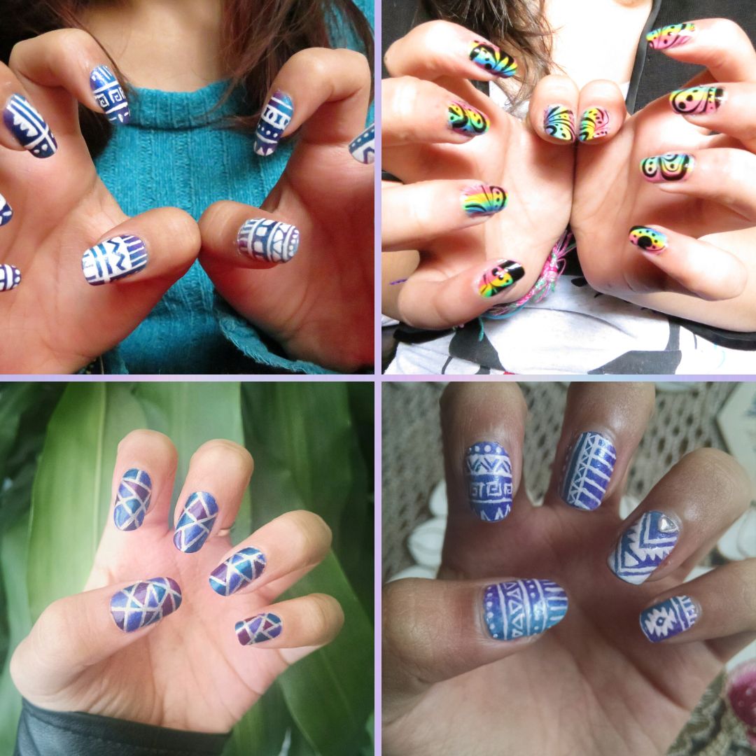 En algún punto me arriesgué a realizar diseños tribales con mano alzada, algunos con watermarble y algunos con cintas para hacer líneas rectas, en este punto llevar un color plano ya no era una opción para mi.