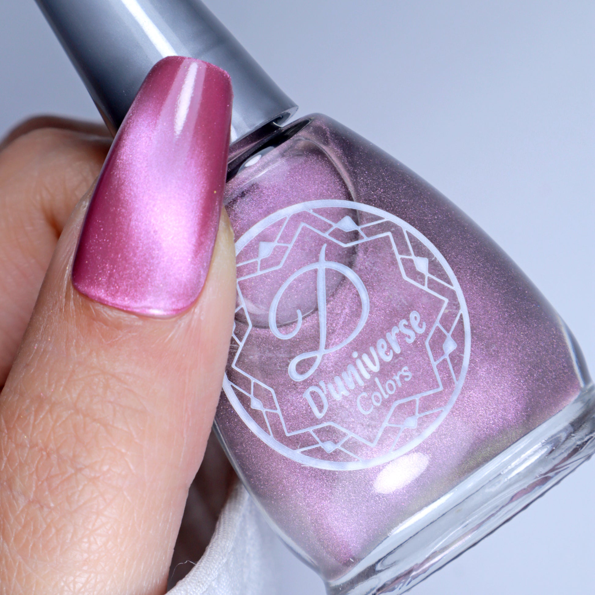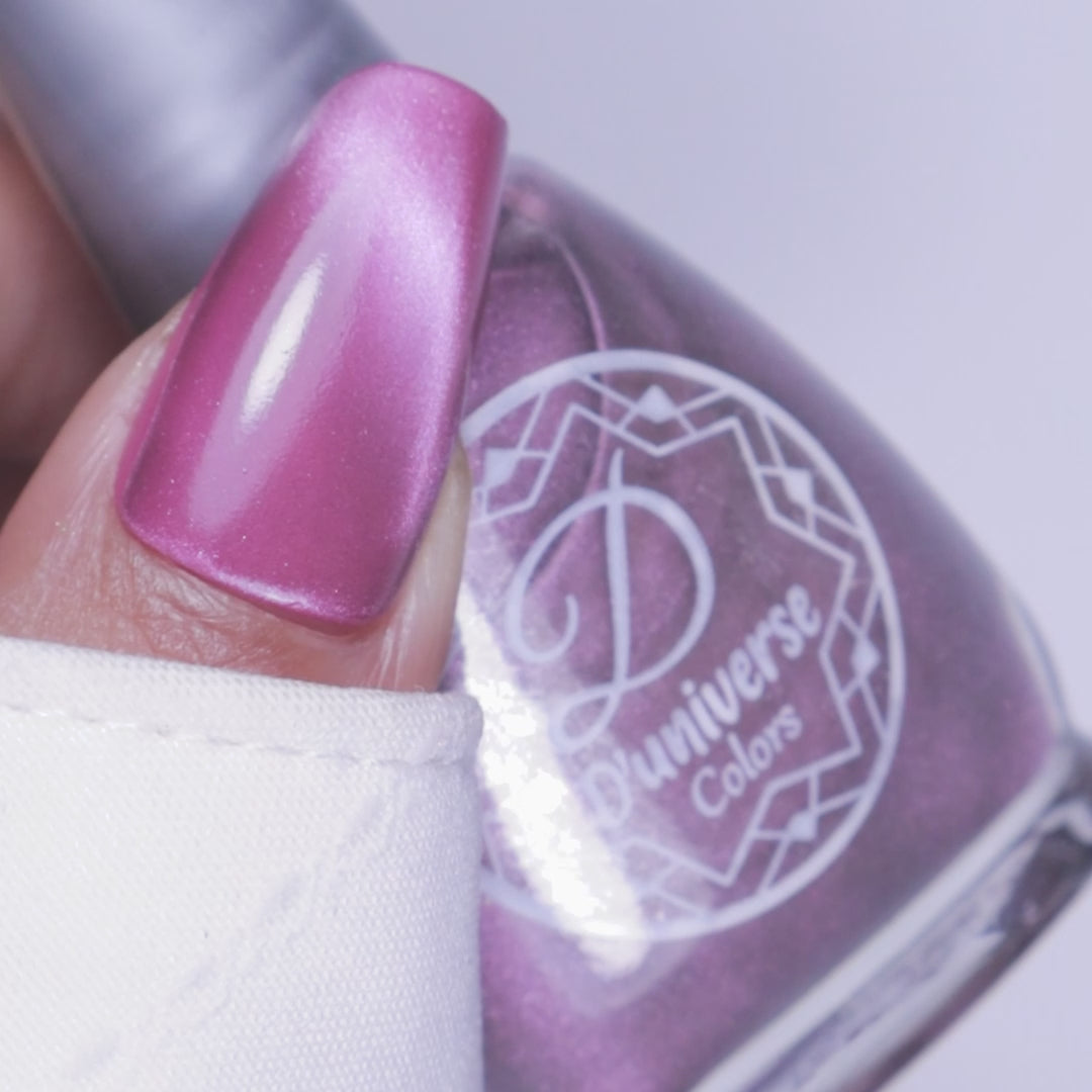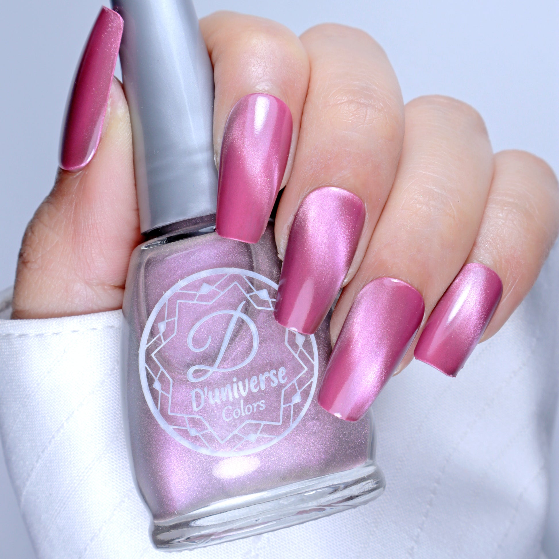 Esmalte tradicional ojo de gato rosa con partícula velvet ultra fina, perfecto para el día a día, aplícalo sobre tonos fuertes, no pasteles.