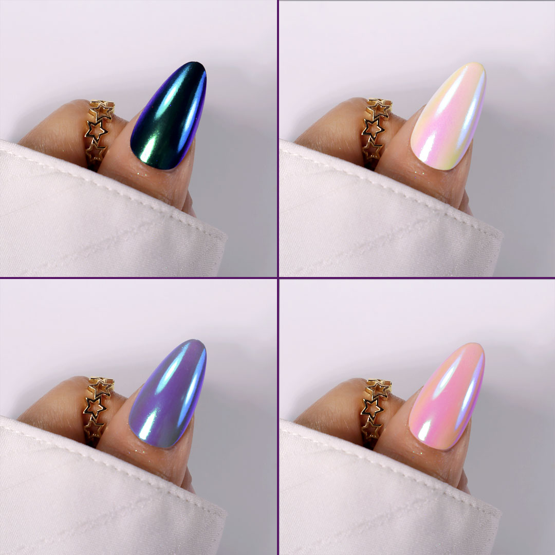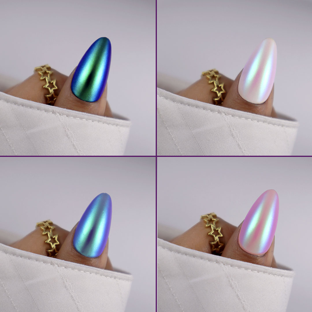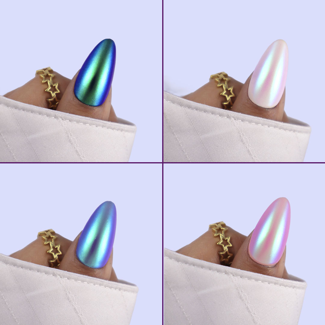 Aplícalo sobre tu tono de preferencia en tradicional o semipermanente (en blanco no lo recomiendo mucho), para conservar el efecto metalizado sella con un brillo base agua o con top coat semi.