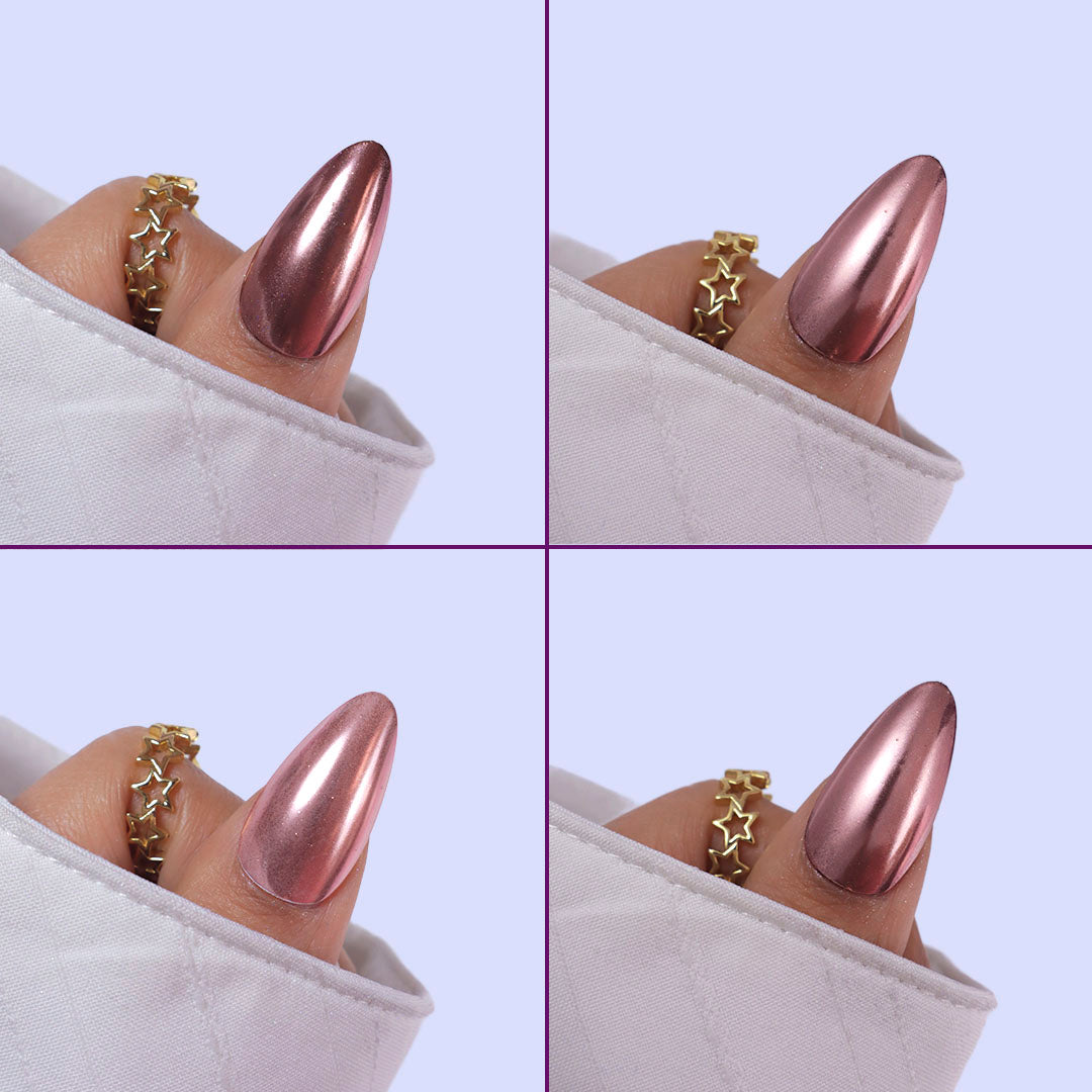Atenea: Oro rosa hermoso con partículas que crean un espejo metalizado en tus uñas.