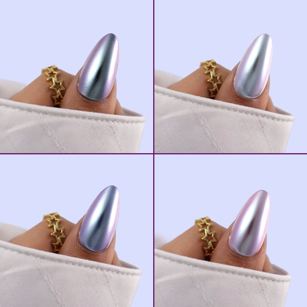 Aplícalo sobre tu tono de preferencia en tradicional o semipermanente (idealmente NO tonos pasteles o blanco), para conservar el efecto metalizado sella con un brillo base agua o con top coat semi.